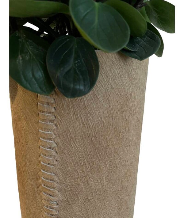 Leren Vazen/Potten van PM18, de blikvanger voor de mooiste bloemen en planten. Met hun speciale materiaal en maat vormen ze een ware eyecatcher binnen het interieur.