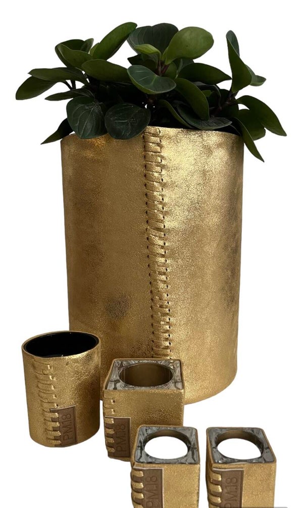 Leren Vazen/Potten van PM18, de blikvanger voor de mooiste bloemen en planten. Met hun speciale materiaal en maat vormen ze een ware eyecatcher binnen het interieur.