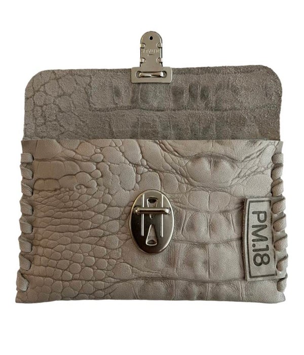 Portemonnee (handgemaakt) van echt leer. De portemonnee sluit met een tic-tuc slot en heeft 1 vak. O.a handig voor pasjes, kleingeld en opgevouwen briefgeld.